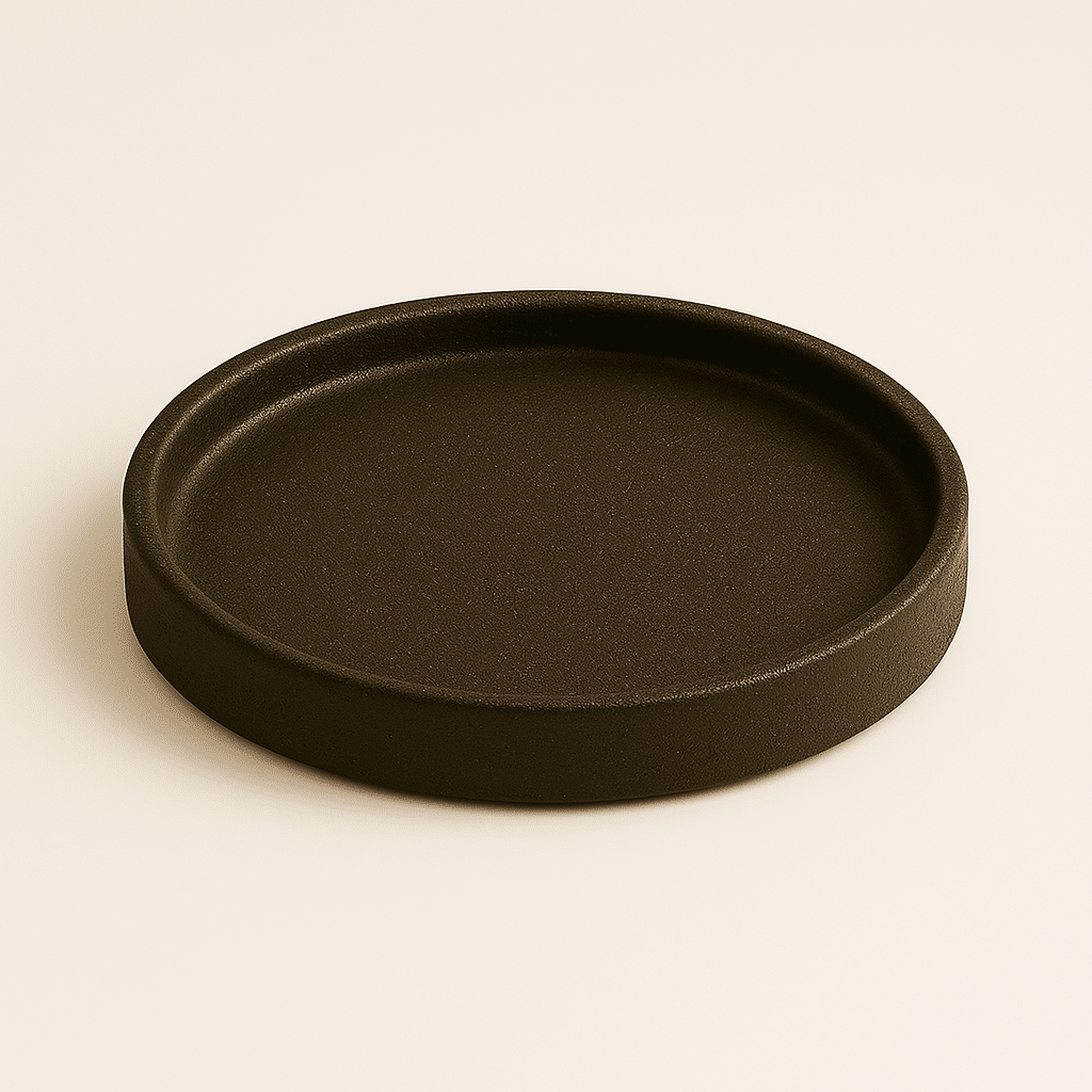 Pieza de forma orgánica y acabado mineral, creada a partir de posos de café recuperados.