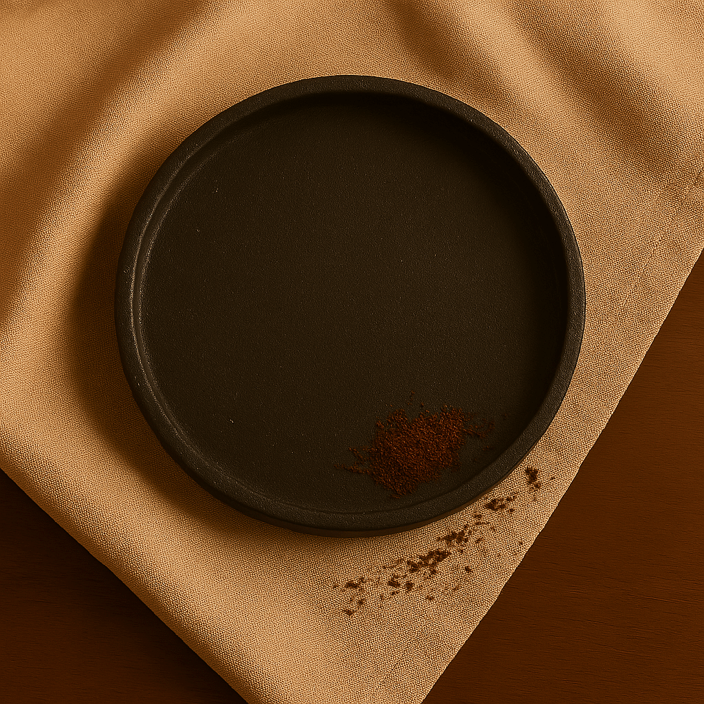 Kofi Magma — posos de café, acabado mineral, tacto volcánico.